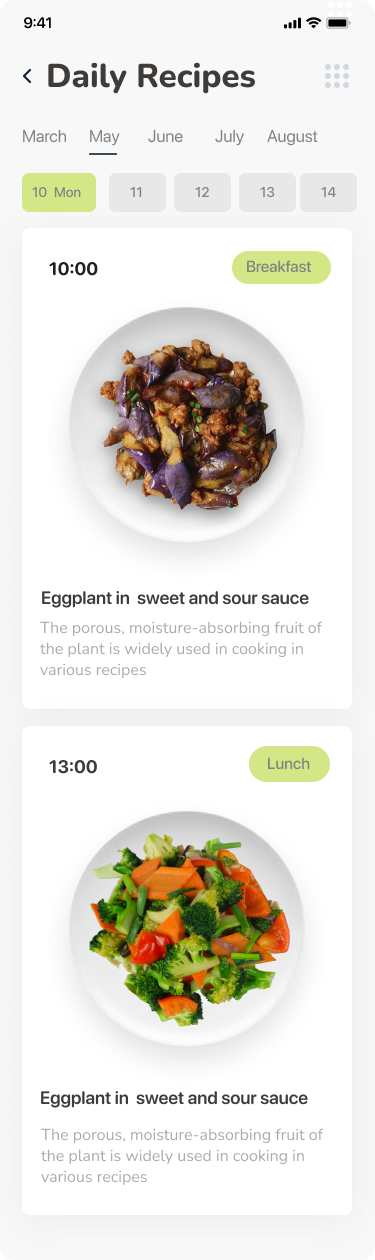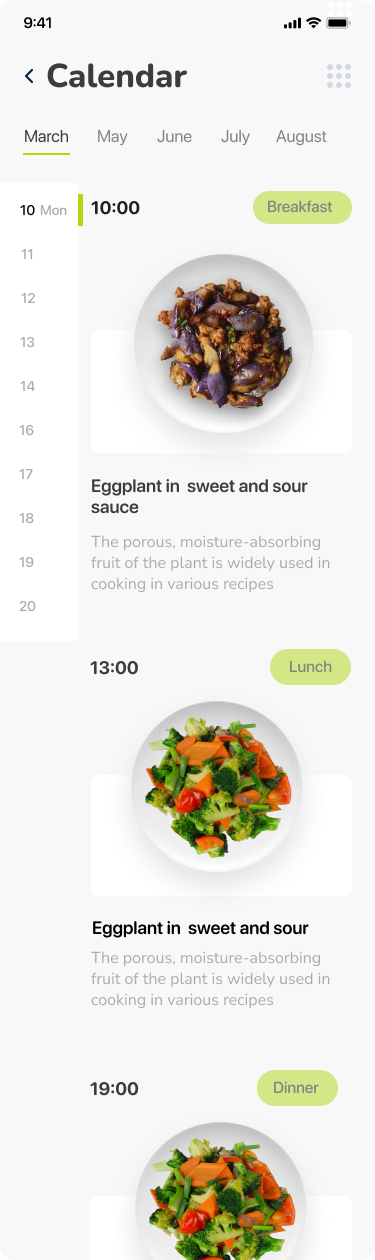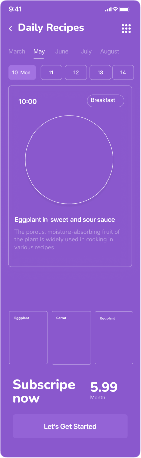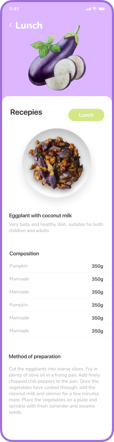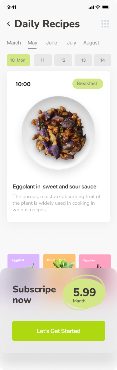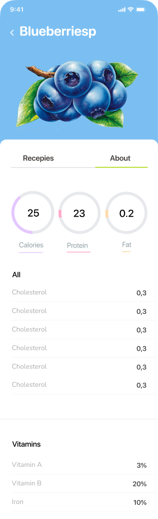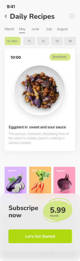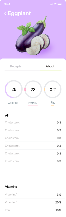 The main product navigation is carried out by swipe, you can also switch to catalog mode. Product images are made in watercolor style.